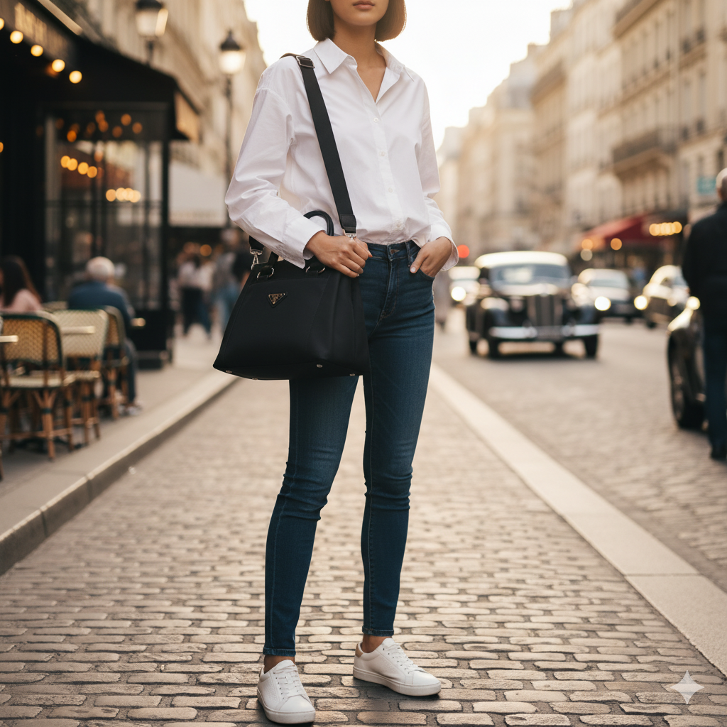 Refined and versatile, this structured handbag blends minimalist luxury with everyday functionality. Crafted from premium nylon with smooth leather-like details and silver hardware, it’s the perfect companion for both work and leisure.